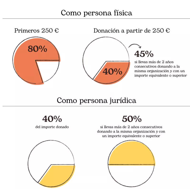Si eres una persona física puedes desgravar de tu donación hasta el 80% en los primeros 250€.